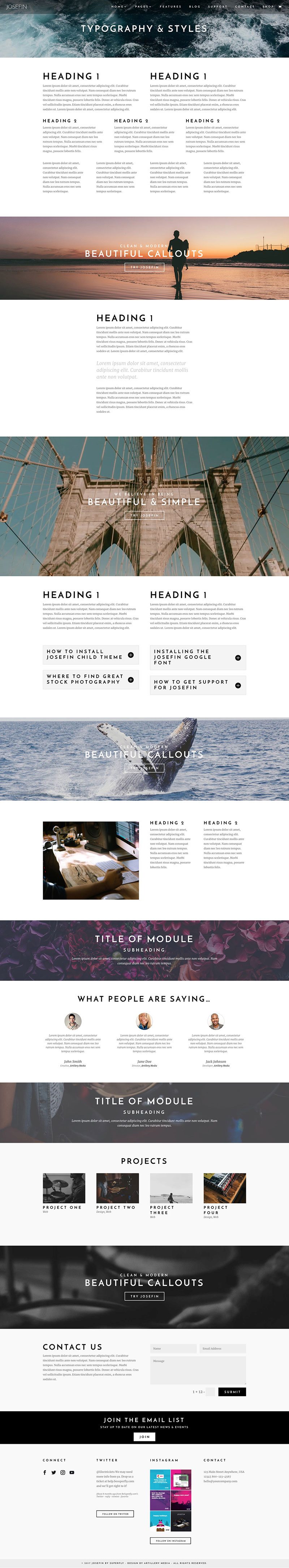 From the beginning, Josefin was designed to be clean, simple and modern. Attention to detail was paramount throughout the design and build process. Clean typography with generous amounts of white space ensure an enjoyable reading experience, while also allowing stunning photography to shine.